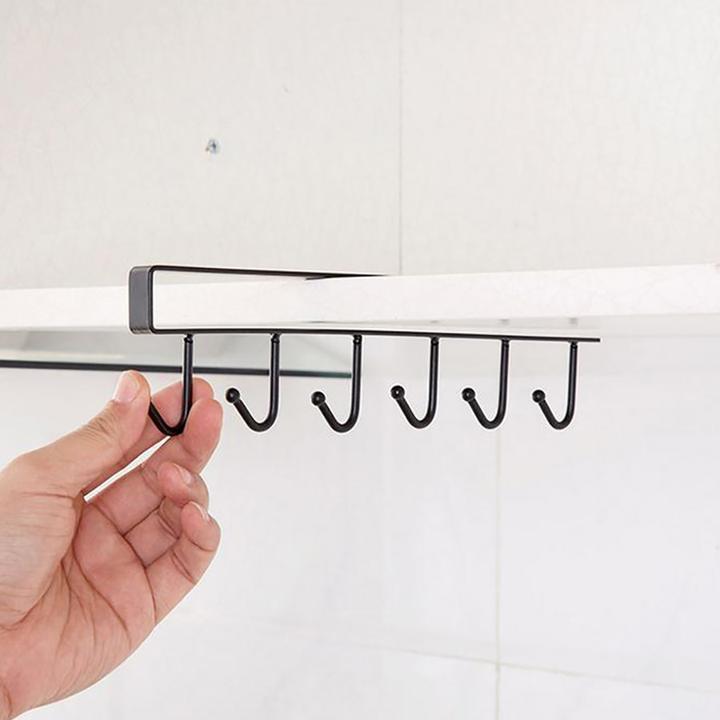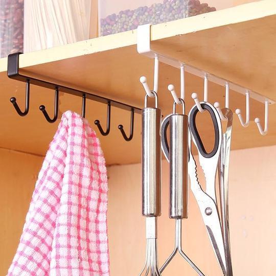 Our Cabinet Hook is perfect for hanging coffee mugs or cooking utensils. The rack slides over any standard shelf and offers six strong hooks for mugs, utensils, and other kitchen products.