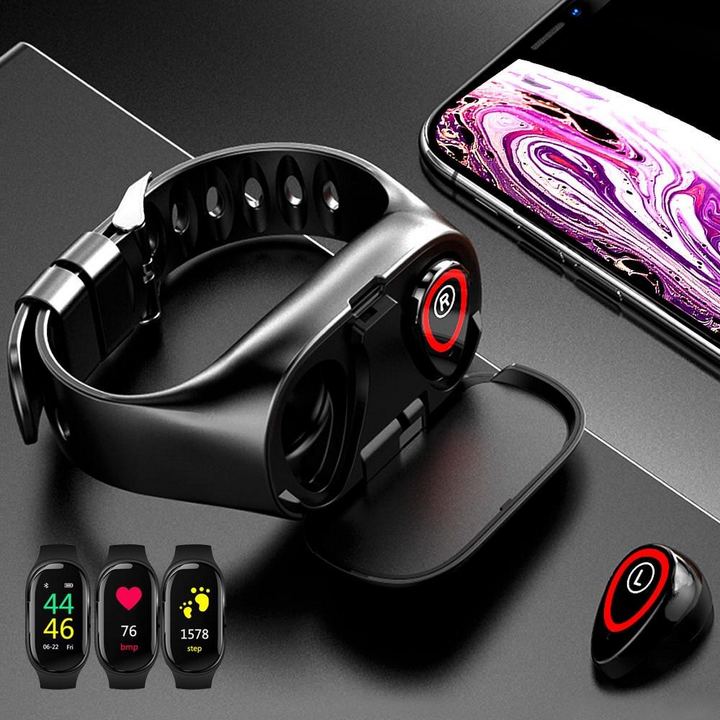 Keep track of your workout as well as your earplugs at the same time with the watch, the 2-in-1 Smart Band with Bluetooth 5.0 Earbuds.